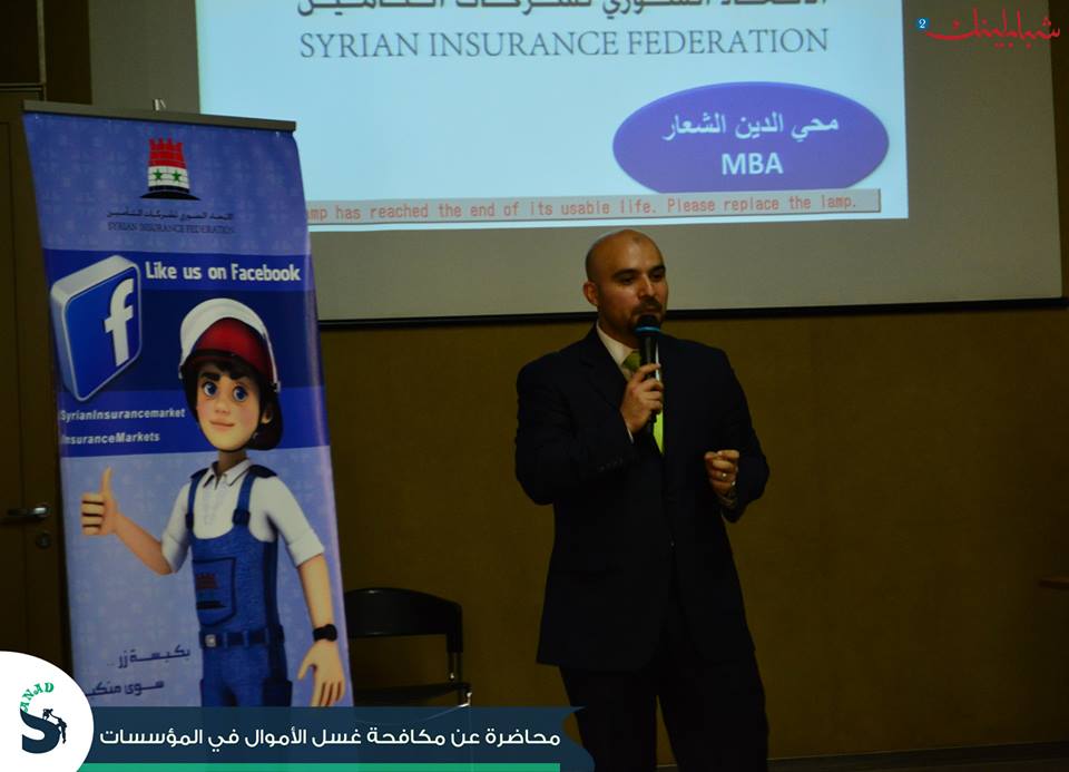 وفي اليوم الثاني قدم المدرب السيد محي الدين الشعار ورشة عمل باسم إضاءات على تطبيق مرسوم مكافحة غسيل الأموال في المؤسسات المالية.