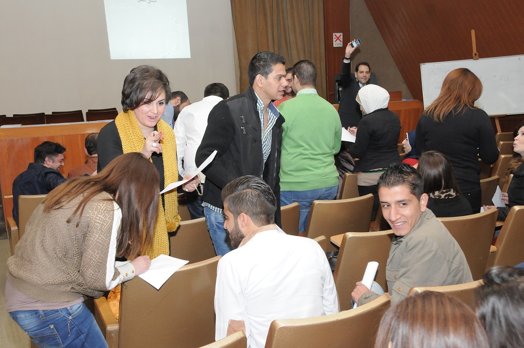 قدم الدورة التدريبية المدرب نوار البيطار حيث طرح خلالها عدة محاور كالتعرف على الأنماط المختلفة للعملاء وأساليب العناية بهم.