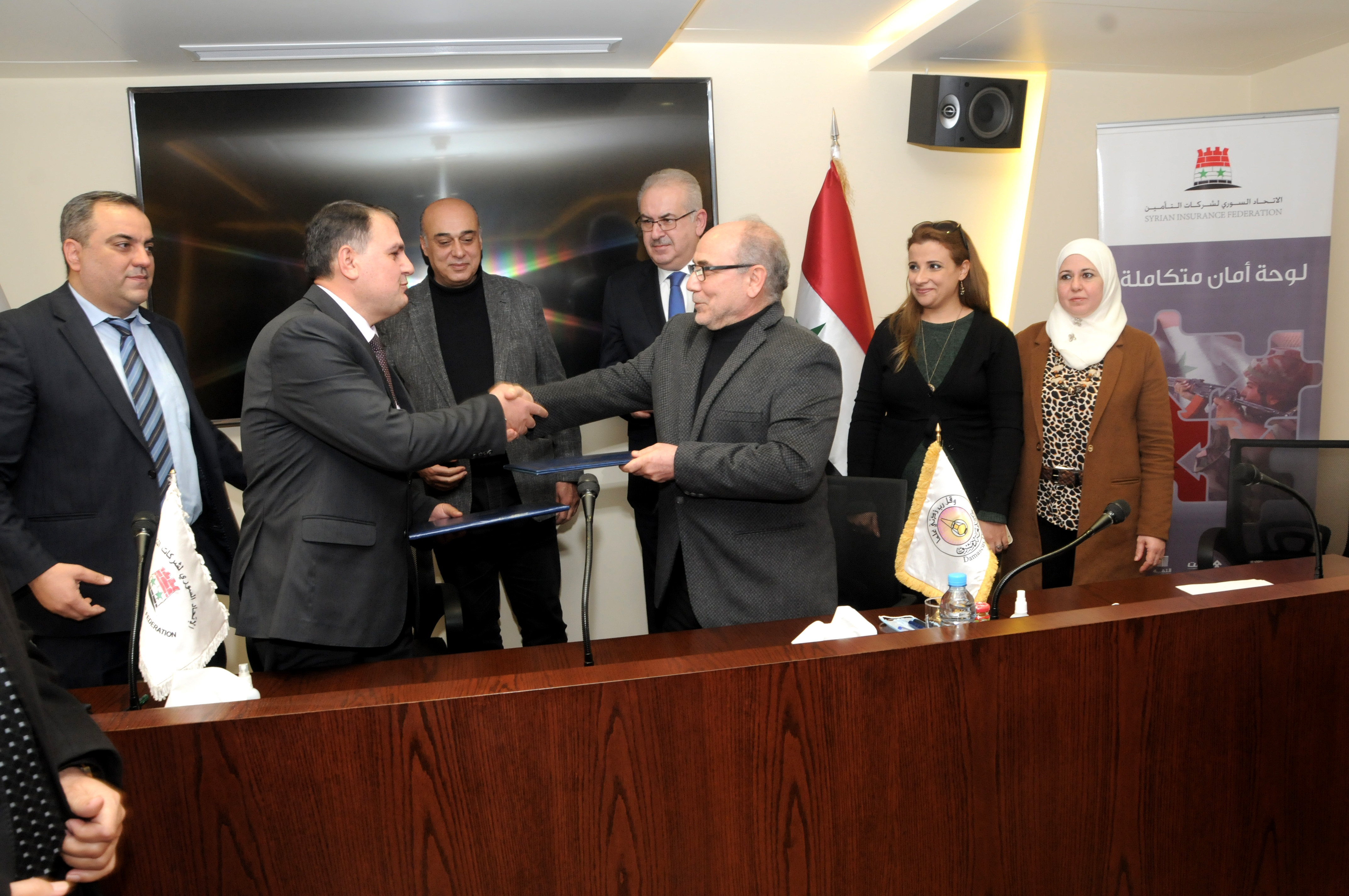وقع الاتفاقية كل من السيد رئيس جامعة دمشق الدكتور محمد يسار عابدين والسيد رئيس مجلس إدارة الاتحاد السوري لشركات التأمين الدكتور نزار زيود، وتضمنت مذكرة التفاهم التعاون في عدة مجالات: